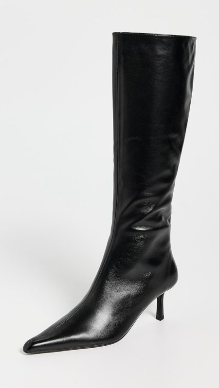 Upper: Cowhide Croc-embossed texture Faux leather lining and cushioned footbed Stacked chunky heel No closure, pull-on design Pointed toe Leather sole with rubber patch Imported, Brazil This item cannot be gift-boxed Style tag / box may read Analeah boot Style #SCHUT31280 Crafted from croc-embossed leather, these tall Schutz boots cut…