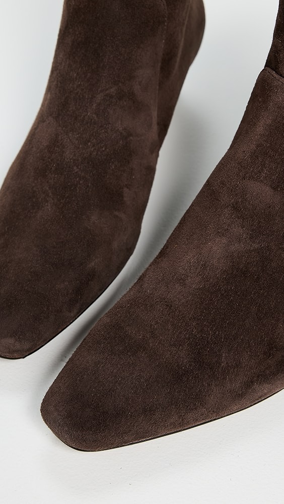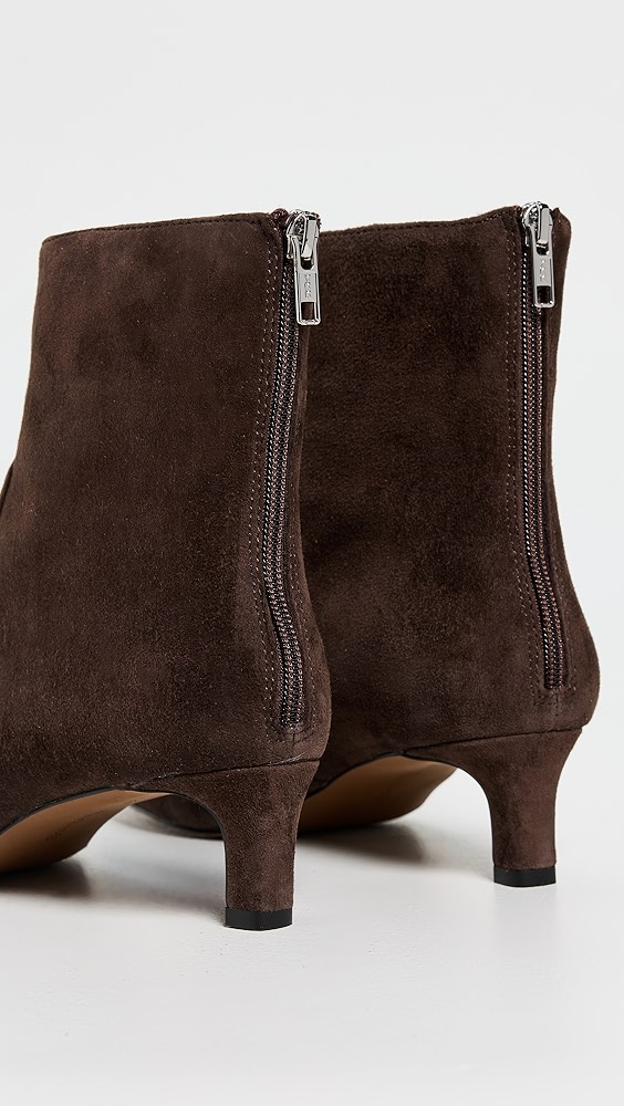 Upper: Suede Lining: Leather Covered heel Ankle zip Square toe Leather sole with rubber heel cap Made in Portugal This item cannot be gift-boxed Style #STAUD32820