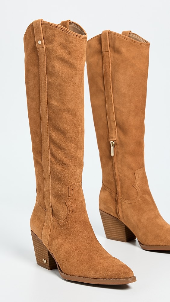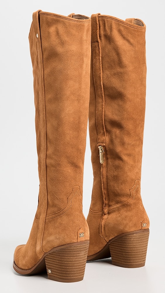 Upper: Sheepskin suede Gold-tone logo charm at back Covered heel Zip closure Pointed toe Synthetic sole Imported, China This item cannot be gift-boxed Style #SAMED42494