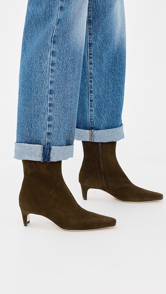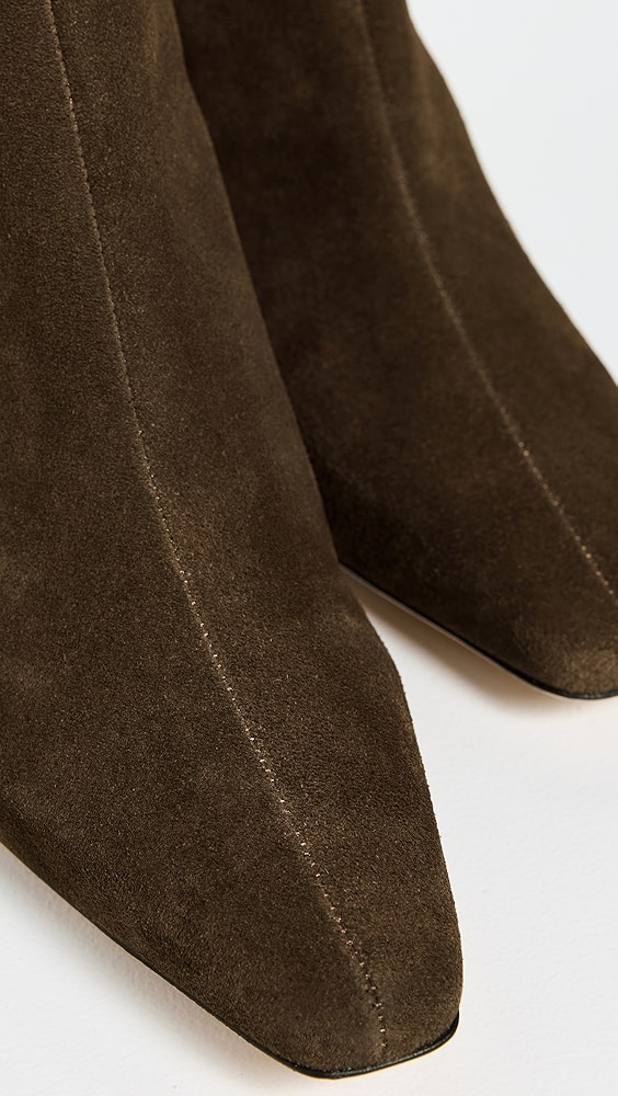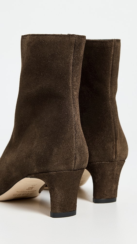 Upper: Sheepskin suede Gold-tone logo charm at back Covered heel Zip closure Pointed toe Synthetic sole Imported, China This item cannot be gift-boxed Style #SAMED42494