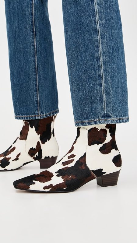Cannot be shipped outside the USA Dyed haircalf (cow), from Australia Upper: Cowhide Cow print Lightly cushioned footbed Lining: Leather Stacked heel Ankle zip Square toe Synthetic sole Imported, China This item cannot be gift-boxed Style #MADEW47071